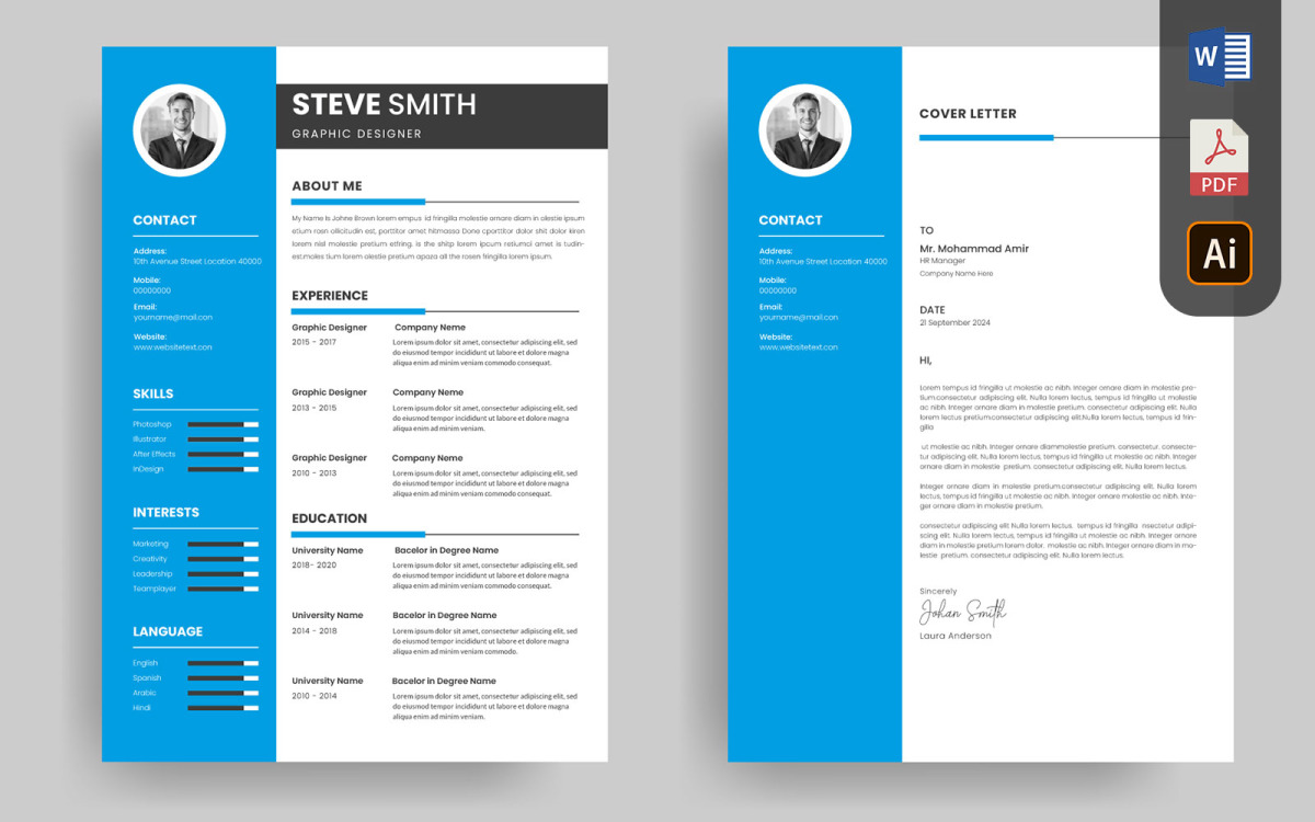 Professional Resume Template Design and Minimalist CV Cover Letter